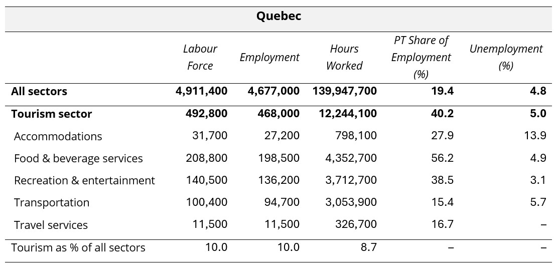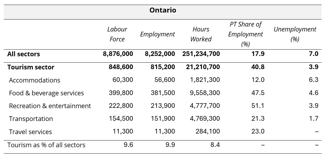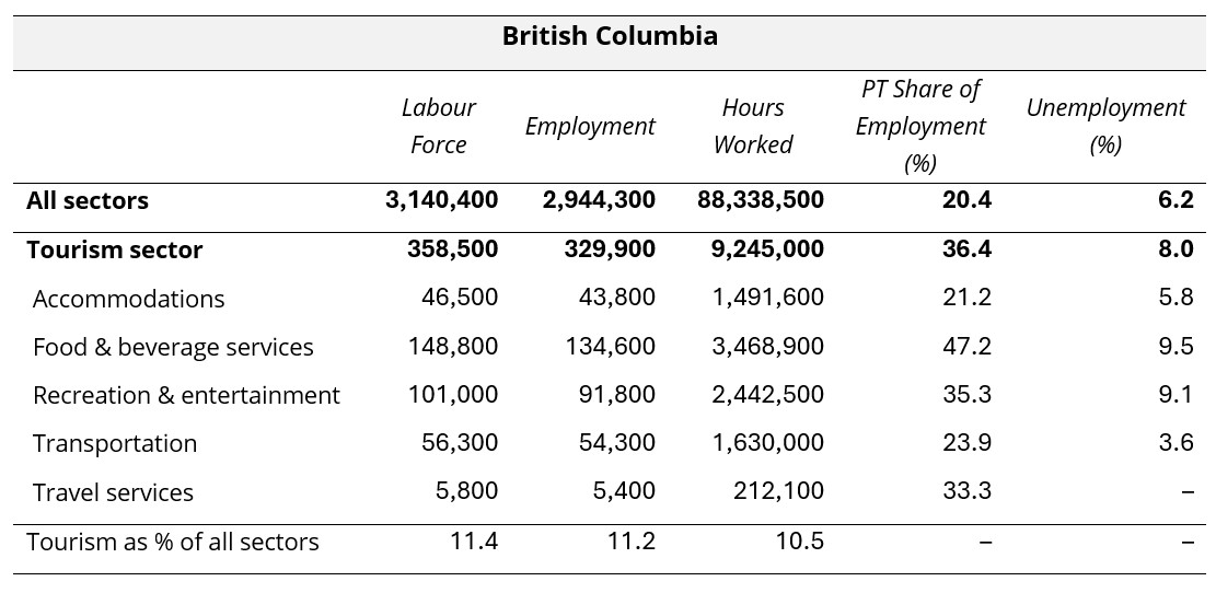 In October, tourism employment accounted for about 10% of all employment in Canada, which is little changed from last month; around 9.5% of the total Canadian labour force were working in tourism.